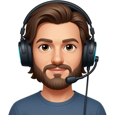 Homme brun avec une barbe avec un casque de jeux vidéo emoji