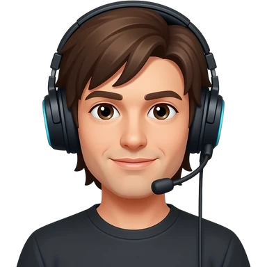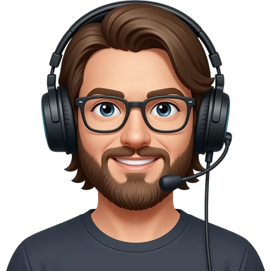 casque jeux , homme, cheveux mi-long, brune, barbu, lunette emoji