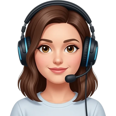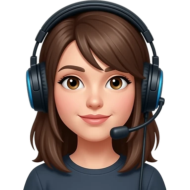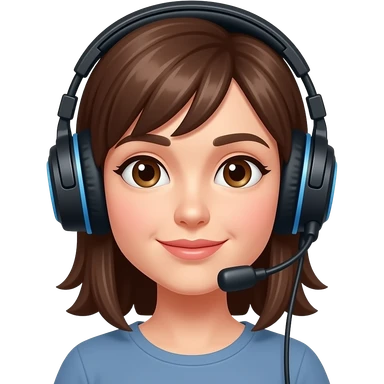 casque jeux , femme, cheveux mi-long, brune,classe emoji