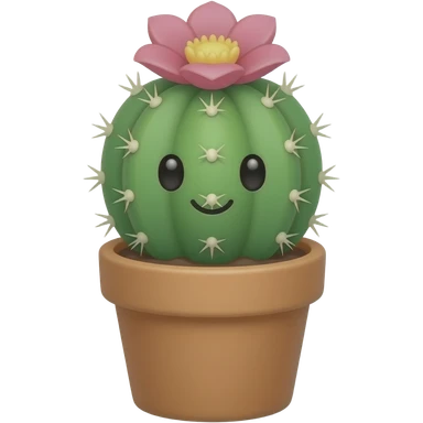 Cute indoor cactus emoji in a small pot, green rounded cactus with soft spikes, one blooming pink flower on top, warm minimal 3D style, smooth matte texture, soft shadows, centered, isolated on transparent background” emoji
