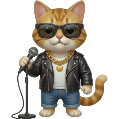cat rapper with mic with zoomed in view emoji