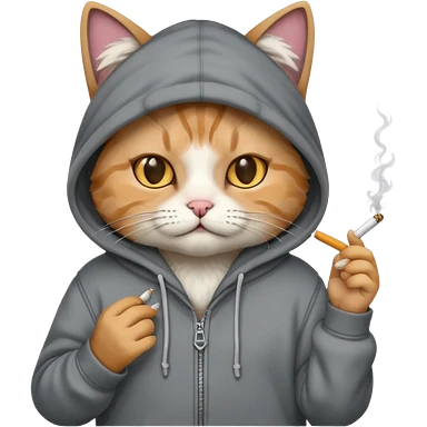 cat with a hoodie and a cigarette emoji