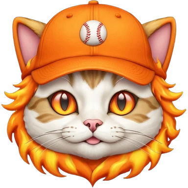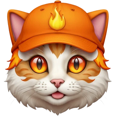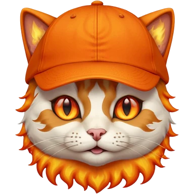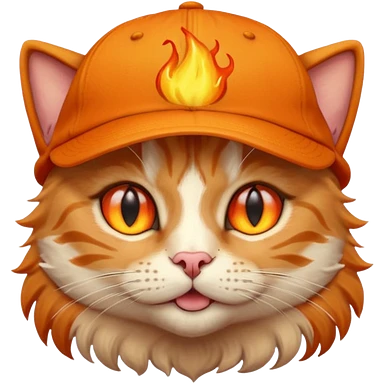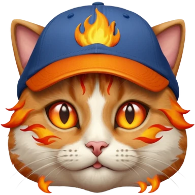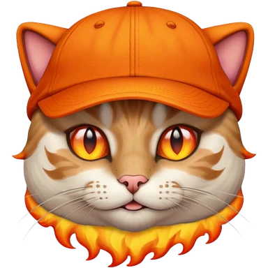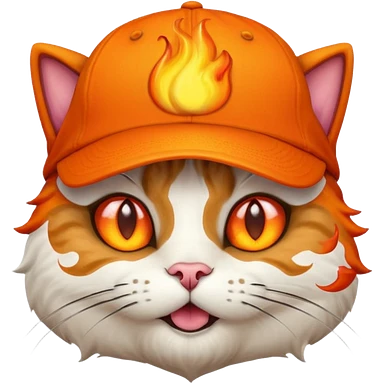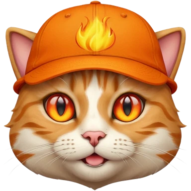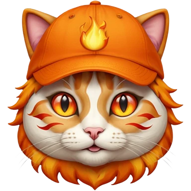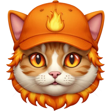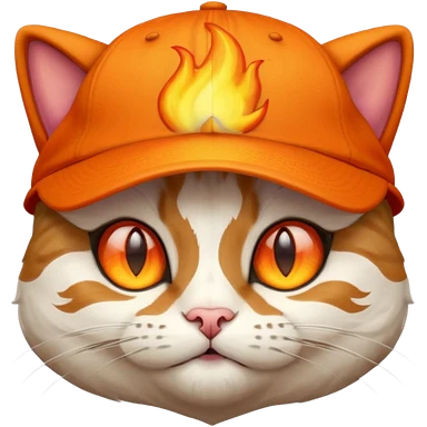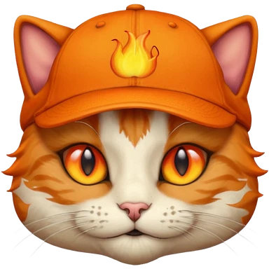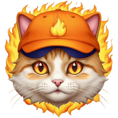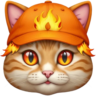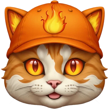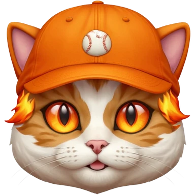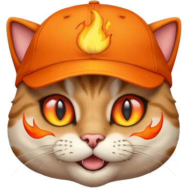 Cat with the flames in his eyes with a orange baseball hat in emoji