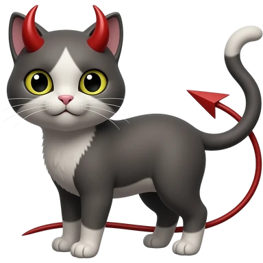 cat standing pose front view with red devil horns and bat wings emoji