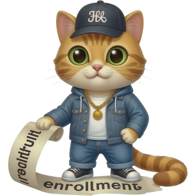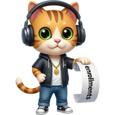 cat rapper rolling a paper that says enrollments emoji