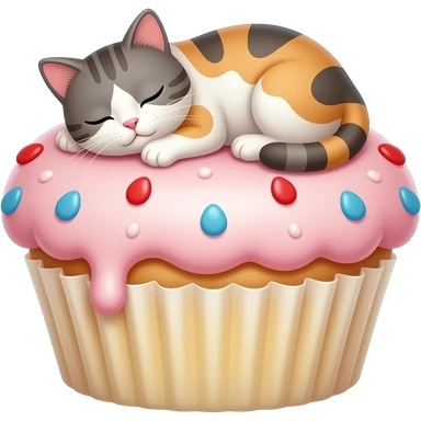 Cat sleeping on giant cupcake emoji