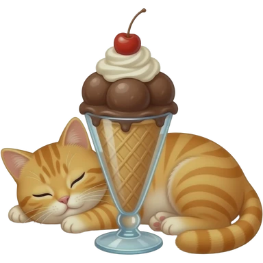 Cat sleeping on 3 scoop ice cream sundae emoji