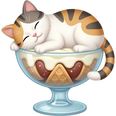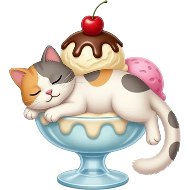 Cat sleeping on giant 3 scoop ice cream sundae emoji
