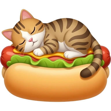 Cat sleeping on giant hot dog emoji