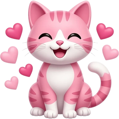 cat pink with hearts and happy emoji