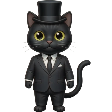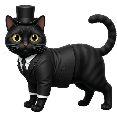 Cat with a top hat, emoji: 🐱 a black cat with a suit black, but sont let it stand like a human, let it stand like a cat emoji