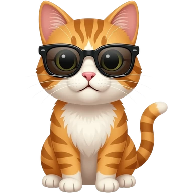 Cat with a round face, half-lidded smug eyes behind thin rectangular glasses, and a playful grin. A dark fedora is tilted as one hand tips the brim. The character leans forward in a cheeky bow while their legs bend upward behind them, feet kicking playfully. Slight blush and a sparkle on the glasses emoji
