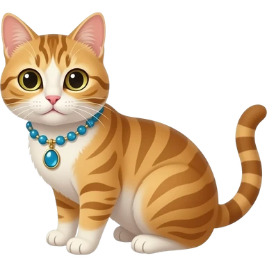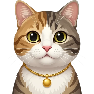 cat with face and half body close up front view wear necklace emoji