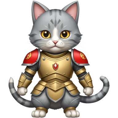 cat ares has battle armor. dynamic pose emoji