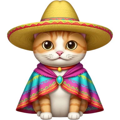 Cat wearing a sombrero with a mustache and poncho. emoji