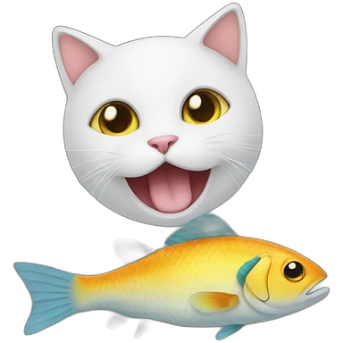 Head of White fluffy cat and a half of blue magic fish tail emoji