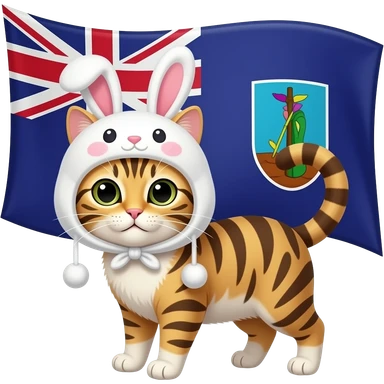 Create a cat with cute rabbit hat and with the Flag of Montserrat emoji