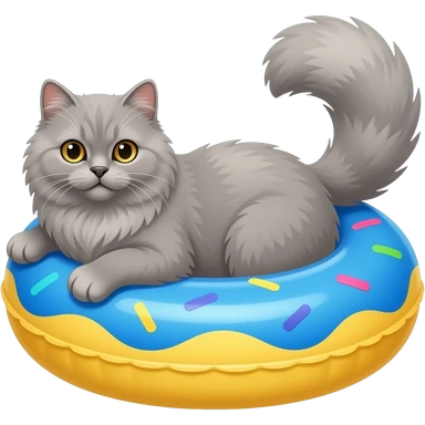 Grey Persian cat in a blue and yellow floating donut shaped pool toy emoji