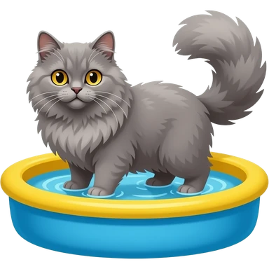 Grey Persian cat in a blue and yellow floating pool toy emoji