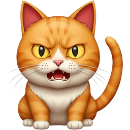 A fluffy cat with its fur raised and arched back in an attack position, looking fierce but adorably wide-eyed, with tiny paws slightly lifted as if ready to pounce. emoji