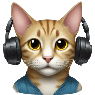 cat DJ with turntables, minimal details, clear silhouette, website icon emoji