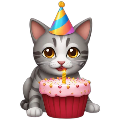 Orange cat, white and gray cat, gray and black cat birthday party emoji