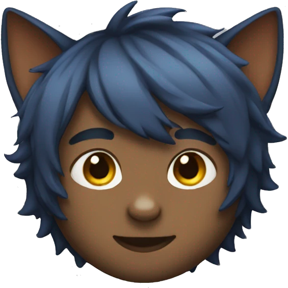 cat boy with black side swept bangs and shaved sides and back of head and purple eyes emoji