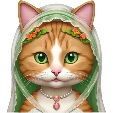 Cat bridesmaid with flowers and white veil emoji