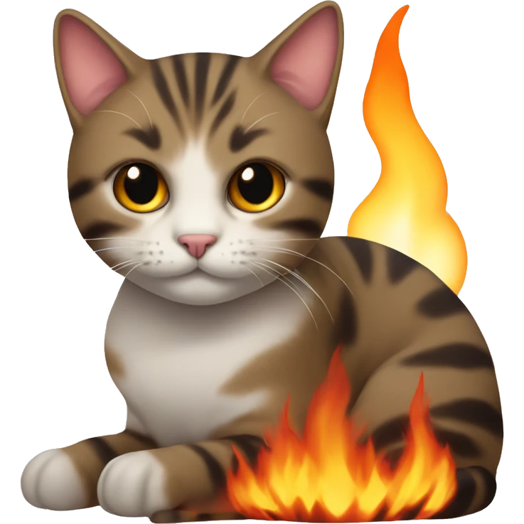 Illustrate a calm cat with glasses, holding a coffee cup, surrounded by flames. The cat has a relaxed expression with closed eyes, unfazed by the fire. emoji