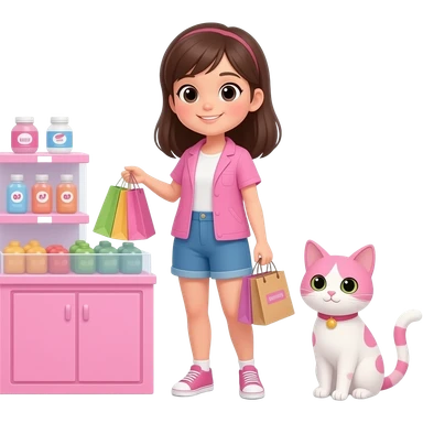 cat pink and hite, female, shoping pink girl emoji