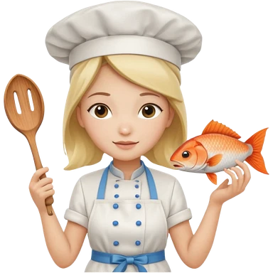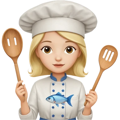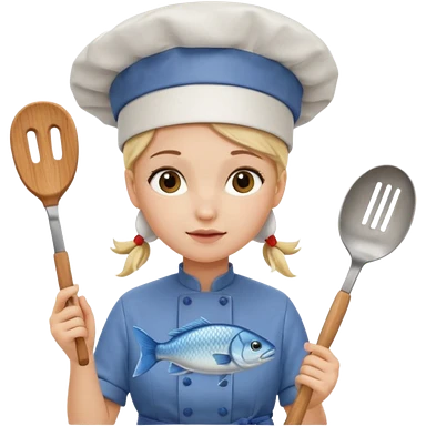 Girl cat cooking fish emoji