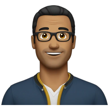 a guy, with rainbow glasses, with rainbow hair, with badly applied makup, trying to smile emoji