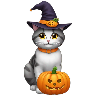 cat with a pumpkinhat on halloween emoji