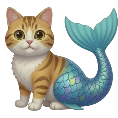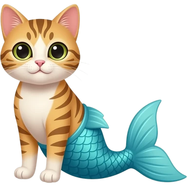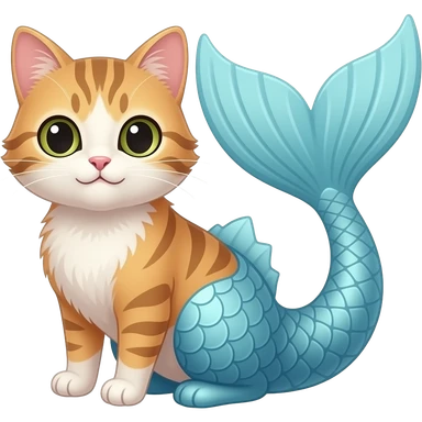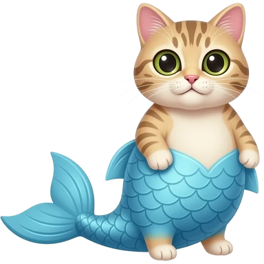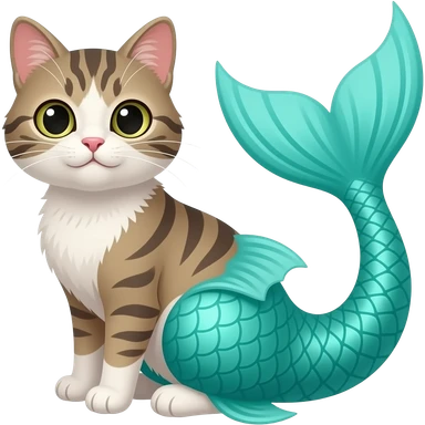 Cat with bulging long #B8FFFF mermaid tail emoji