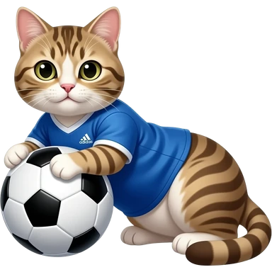 Cat laying on soccer ball wearing blue adidas jersey emoji