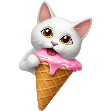 cat eating ice cream with a reddit shirt on and on a computer emoji