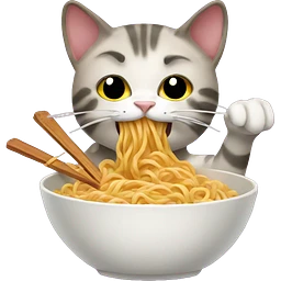 I want a dolphin on top of a cat eating ramen noodles in Japan shibuya emoji