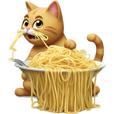 Fat cat eating a big bowl of spaghetti emoji