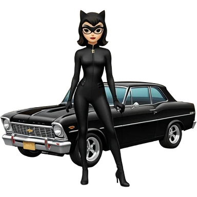 Catwoman’s blackout 1965 Chevy Nova SS street rod emoji