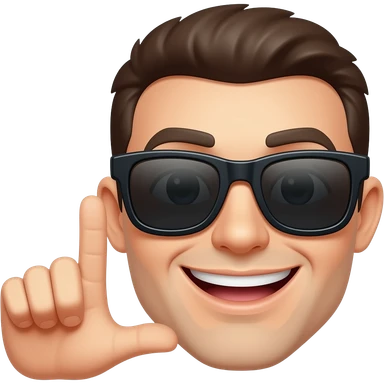 Can you please make a basic emoji face with sunglasses like this emoji 😎 But can you make it instead of a smile have a smirk like this 😏 and can you put this hand next to the face 🤙 emoji