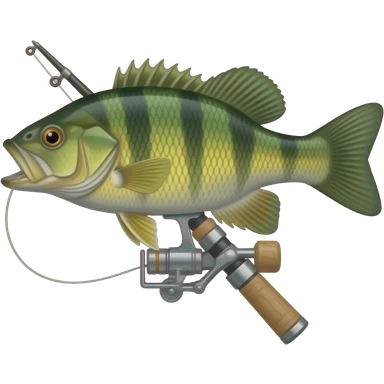a fishing rod with a bass on the end of the hook and arrows going in a circle emoji
