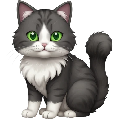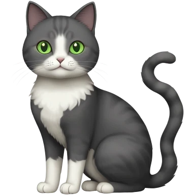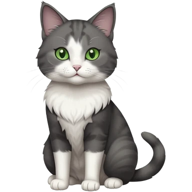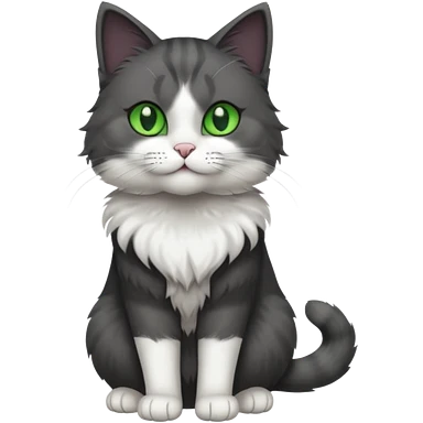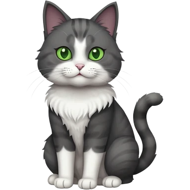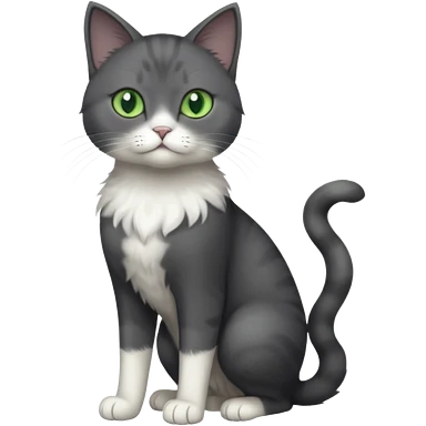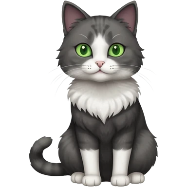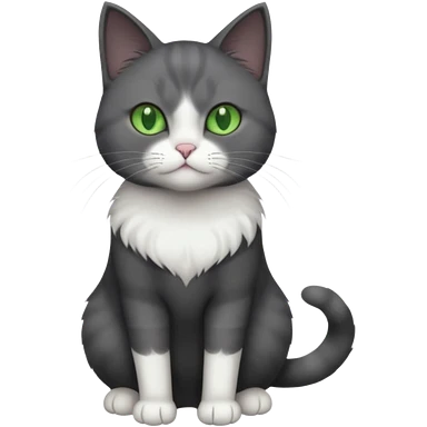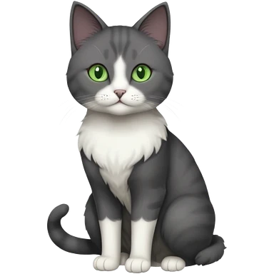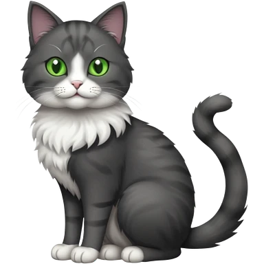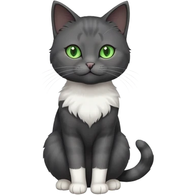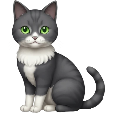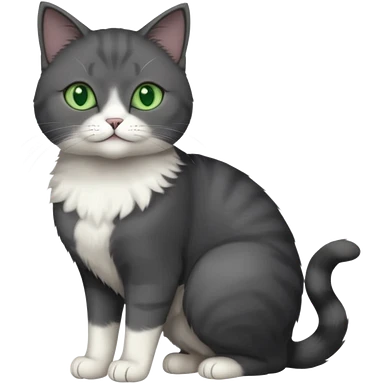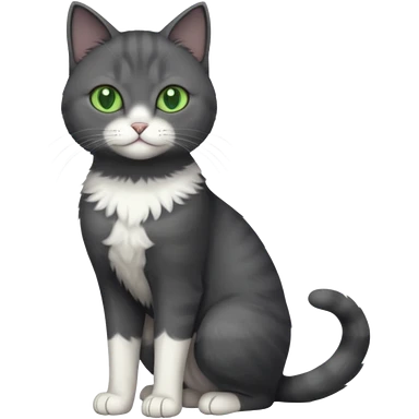 full body view of beautiful female dark grey cat with green eyes, white toes and white patch on chest emoji