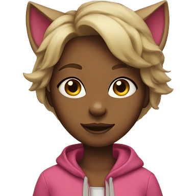 Cat girl with tan skin, pink eyes, pink hair and cat ears emoji