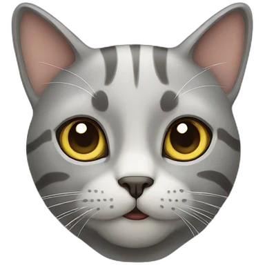 un gato gris con ojos amarillos sonriendo sonrojado emoji