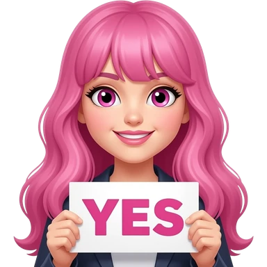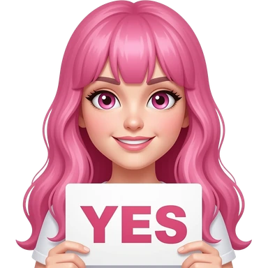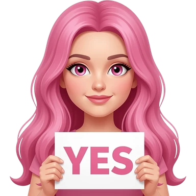 sexy girl with long pink hair and pink eyes holding a YES sign emoji