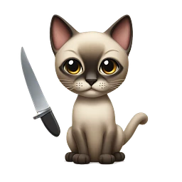 White long haired cat with big eyes and black fur around them holding a knife emoji