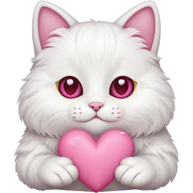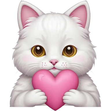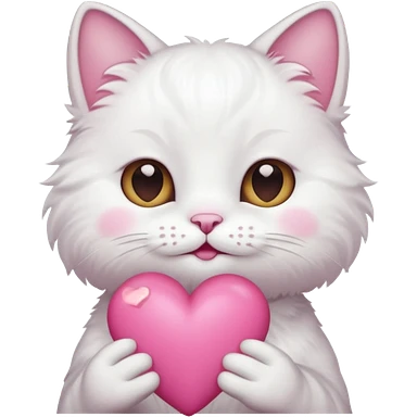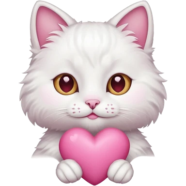 white cat holding pink heart emoji