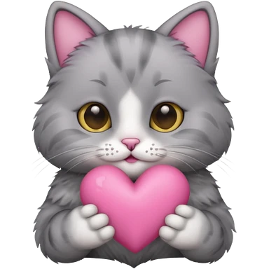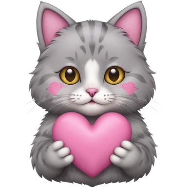 Grey cat holding a pale pink heart emoji