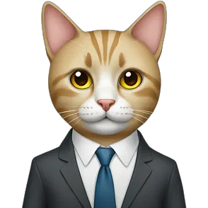 white cat with blue eyes in a black suit with black tie and laptop emoji