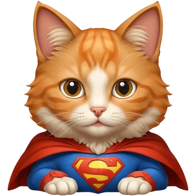 Superman cute kitten, very cute orange cat in superman suit and cape emoji